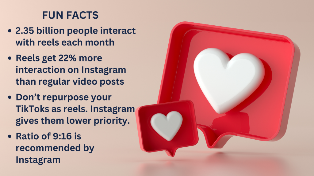 Reels are a great way to get your company’s name and message out there. They more likely to reach a wider audience, as reels are more widely seen and shared. Your posts are generally seen only by your followers, however, reels can be seen by those who do not yet follow you.
